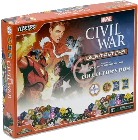 The Marvel Dice Masters: Civil War Collector’s Box is a great space to store your Dice Masters collection! It has a limited edition Full Art promo card and everything one player needs to get started*! Improve and complete your team to crush the competition by collecting more cards and dice in foil packs and other sets!